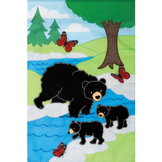 Bear Family Flag has a Mother bear with her two cubs enjoying a mountain stream. This Custom Décor fine art flag is beautifully crafted of high quality fade and mildew resistant polyester material to ensure longevity of each flags’ spectacular art work. The beautiful artistic image appears on both sides of the flag. This decorative flag is an Animal flag & Applique flag with embroidered details. Available (while supplies last) in the Garden Flag [12″ x 18″]. This flag displays best on its optional Garden Flag Stand – which sells separately. Use decorative flags to cheerfully welcome family & friends while creating stunning elements in your home’s landscape or garden beds.