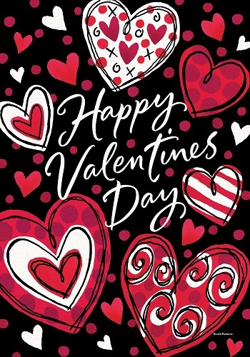 Custom Décor creates vast variety of unique coordinating home and garden décor using high quality material & production processes. Custom Décor outdoor products, such as their show stopping decorative garden flags, come in a variety of themes & designs which allow customization of lawns & gardens for every season, holiday or special occasion. Valentine decorative flags are gorgeous on their own, but provide impactful focal points when clustered in sets or grouping along with other garden décor in varying heights. Valentine garden flags add beautiful bursts of color to large flower pots. So, Custom Décor seasonal flags & holiday flags inspire any home & garden décor. The Black And Red Hearts Flag provides immediate & impactful focal point to your home’s Valentine’s Day landscape or garden beds!