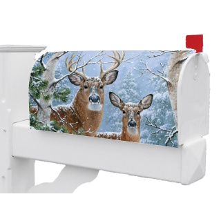 Winter Whitetail mailbox cover is a decorative magnetic mailbox cover by Custom Décor. Used to personalize mailboxes with colorful artistic designs. Magnetic mailbox covers provide artistic images for every season and holiday. Manufactured in the USA using the finest materials and UV-printing process. Therefore, ensuring bright vivid colors and exceptional outdoor durability. Mailbox covers drape over the top of the mailbox & hold in place by strong magnetic strips. Above all, Mailwraps easily install and can be easily changed all year long. Garden House Flags offers the comprehensive collection of Custom Décor Mailbox Makeovers.
